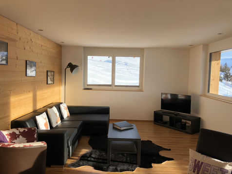 Zwei geräumige 3.5-Zimmer Wohnungen im Parterre mit viel Platz vor dem Haus. Näher an der Piste und am Lift geht's kaum.